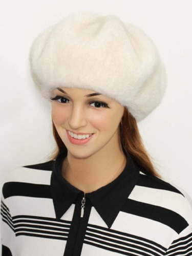 Небольшой, очень аккуратный женский зимний берет "Звёздочка" изготовлен из эко-норки светло бежевого цвета, который дизайнеры назвали "Сливки". Берет мягкий украшен красивыми складками, в дополнительных украшениях берет не нуждается. Головной убор симметричный, он имеет восемь клиньев. Объём - средний. Для коррекции размера в нижний край берета вшита стяжная резинка с замочком фиксатором.